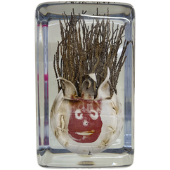 Pelota de voleibol “Wilson” de la película Naufrago, encapsulada en su totalidad en resina transparente boleada, lijada y pulida a mano.